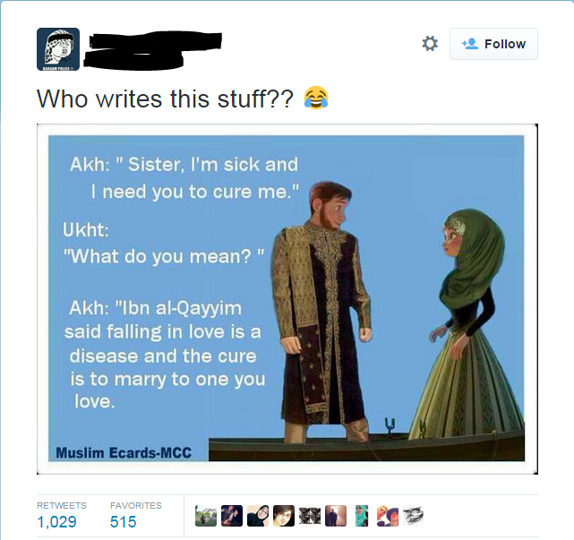 Muslim Twitter, in my own words is an informal group of young people on social media that post things that commonly romanticize Islamic values. Some examples of values they romanticize are: modesty, following the Sunnah, prayer and marriage. While a lot of Muslim Twitter’s actions seems unintentional, its culture that is spreading reveals an attitude that is quite telling. Recently I have come to realize that the attitude is making Islam look like it can become some type of a pick-up line. Muslim Twitter does not realize this, but it is as if they are trying to devalue the religion of Islam. Below is a perfect set of real examples of Muslim Twitter. Shout out to @Muslamist and many others who just provided me with so many examples of the different shades of how ridiculous Muslim Twitter is.